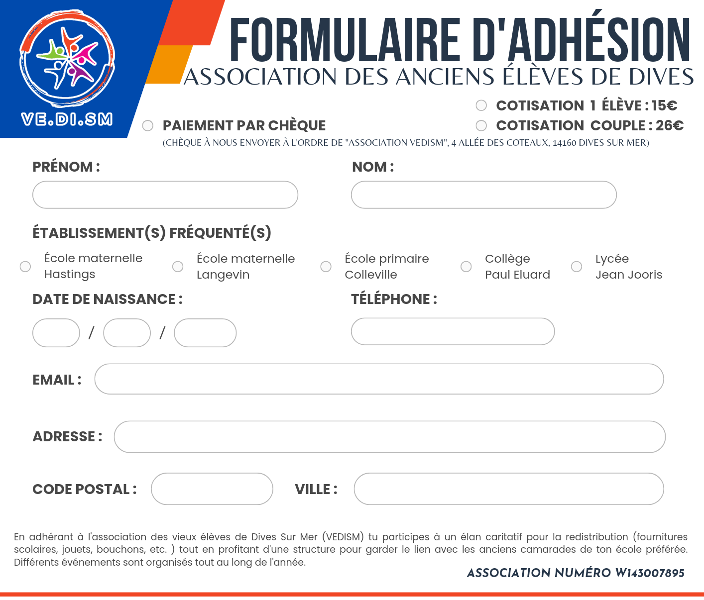 Comme nous le disons souvent, une association ne vaut d'exister que par ou pour ses membres et adhérents et nous comptons sur votre soutien pour mener à bien nos objectifs caritatifs et participer en nombre aux "Conventions" et autres "rassemblements" d'anciens camarades de classe mais aussi vos anciens professeurs !